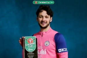 官方:曼城门将特拉福德当选本赛季联赛杯半决赛最佳球员
