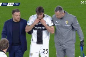 回到场上后克雷马斯基防守都灵球员反击时倒地,捂脸落泪无法坚持被换下。克雷马斯基泪洒赛场。