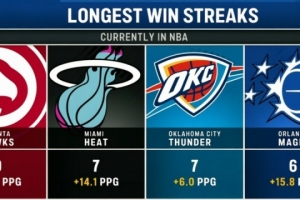 连胜期间,各队场均净胜分:
