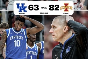 体育资讯3月23日讯 今日疯三32强赛,爱荷华州立大学以82比63大胜肯塔基大学,再次将这支传统劲旅挡在甜蜜16强门外。