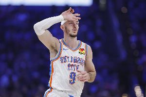 体育资讯3月31日讯 雷霆加时114-110险胜残阵活塞。赛后,雷霆球员卡鲁索接受媒体采访。