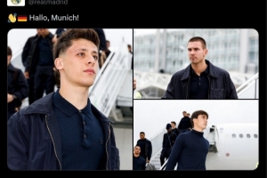 皇马官方社媒晒照,确认球队已经抵达慕尼黑:你好,慕尼黑!